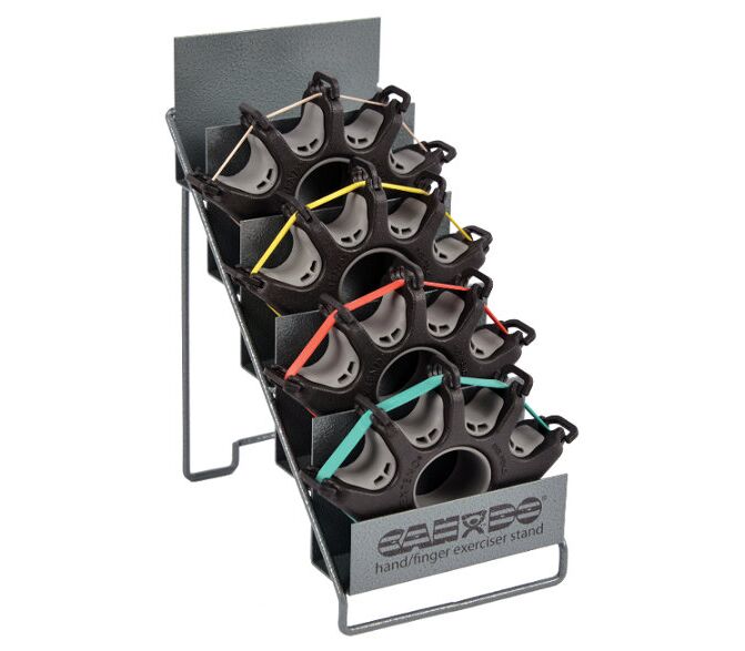 Het weerstandsniveau kan makkelijk worden gewijzigd en de handposities kunnen worden aangepast naargelang de oefening. De vier weerstandsniveaus hebben een verschillende kleur.